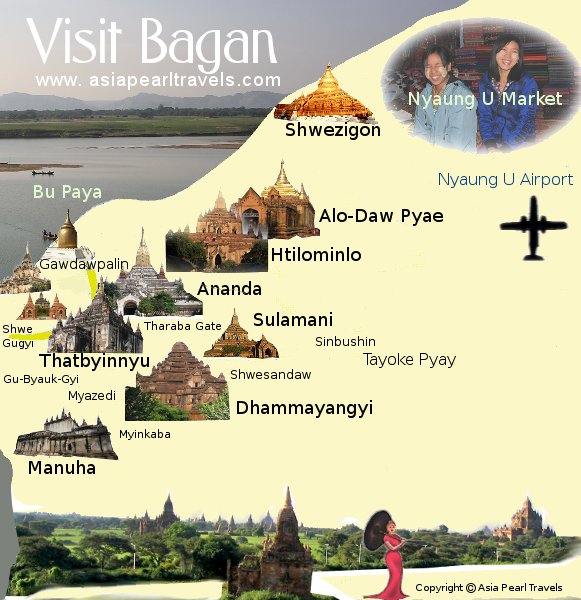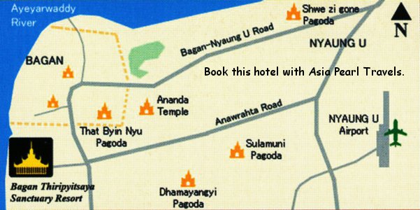 Nearby sightseeing places are Mount Popa to the south, Nyaung U market to the north and Pakkoku across mighty Ayeyarwaddy river.