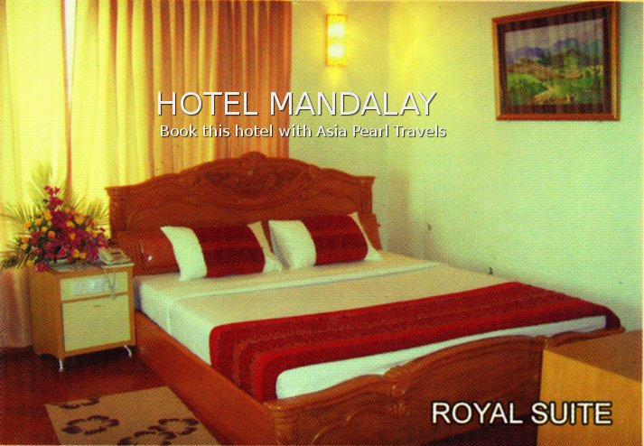 Why pay more to book a hotel in Mandalay? Search no more! We offer low discount agent rates. Make a hotel reservation in Mandalay with Asia Pearl Travels now and get the best deal in town!