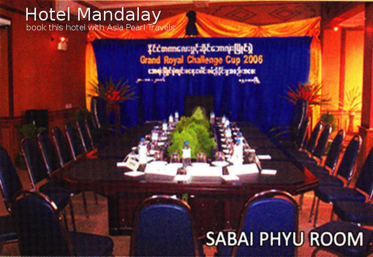120 seat capacity Dining Hall serves delicious European, Chinese and Myanmar cuisine, cocktail, liquor and fruit drinks. Ball Room with 450 person capacity and Sabai Phyu meeting room with lighting, Audio/Video Equipment and LCD Projector.