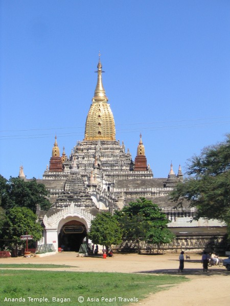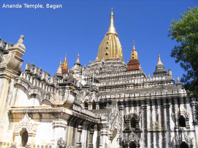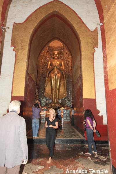 [See close-up view of Ananda Temple | One of four huge Standing Buddha Statues inside Ananda | Ananda Temple from an another angle ]
