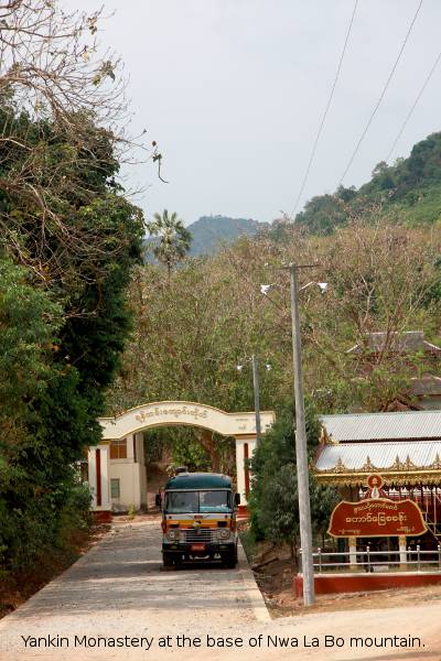 From Bago, we will be driving another 80 miles (130 km) to Kim Pun Village at the base of Kyaikhtiyo. Many devotees prefer to walk up the 6.8 miles (11 kilometres) hiking trek to the top as part of the pilgrimage. Fortunately, there are rental trucks available with sufficient engine power to climb up to Ya-thaid-taung (spelling variant: Yatetaung) only 0.75 mile (1.2 km) away from the "Golden Rock", so we will just do that. We can arrange for you the front seat of one of those open trucks.